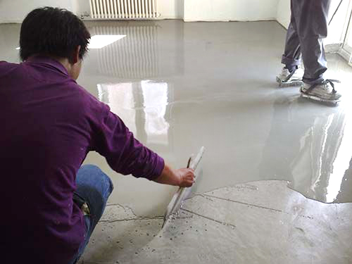 2、水泥自流平底漆:只要不積水、滲透就可施工,將水泥自流平底漆ke-50加入適量水,均勻涂刷地面,不可漏涂或過厚,用以增強(qiáng)素地強(qiáng)度及增 加涂層封素地的附著力;